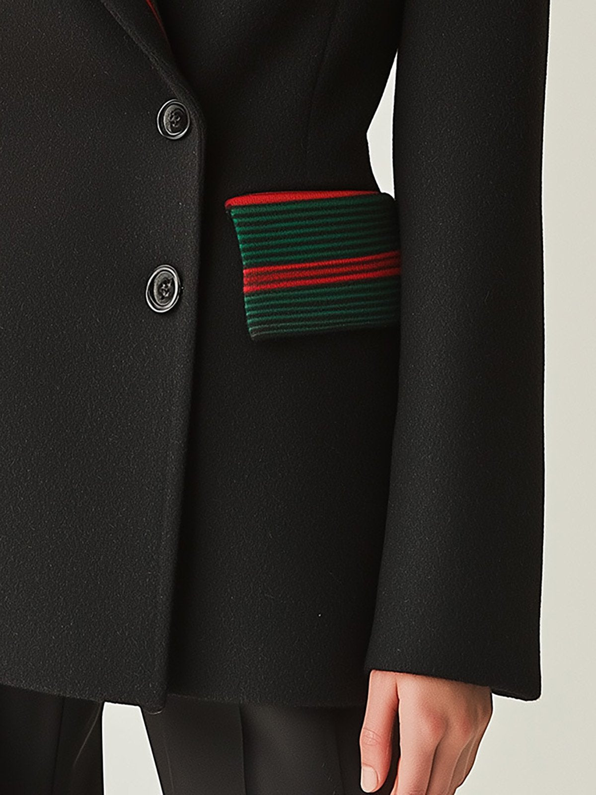 - Design: Red and green contrast color trim along the collar, pockets, and sleeves for a bold, eye-catching detail