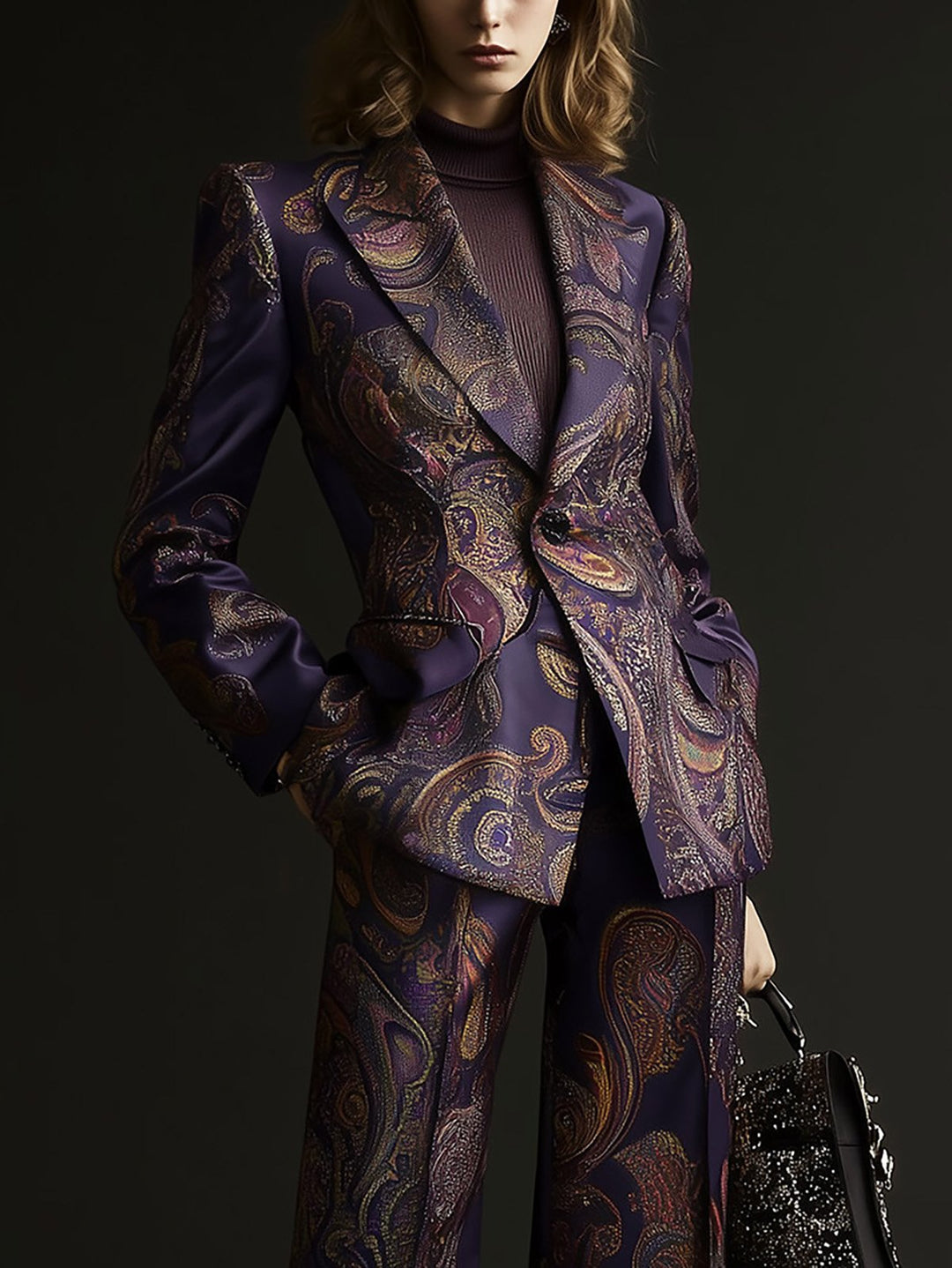 Regal Elegance Dark Paisley Satin Blazer Suit - Blazer